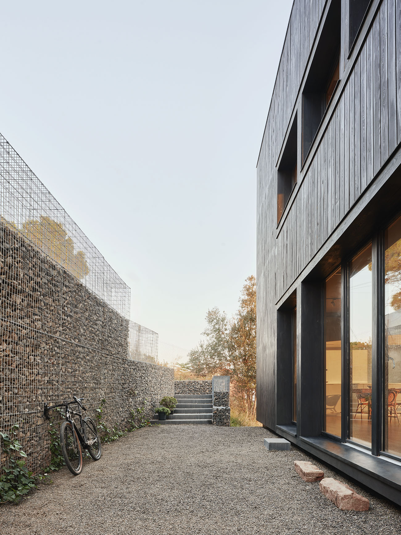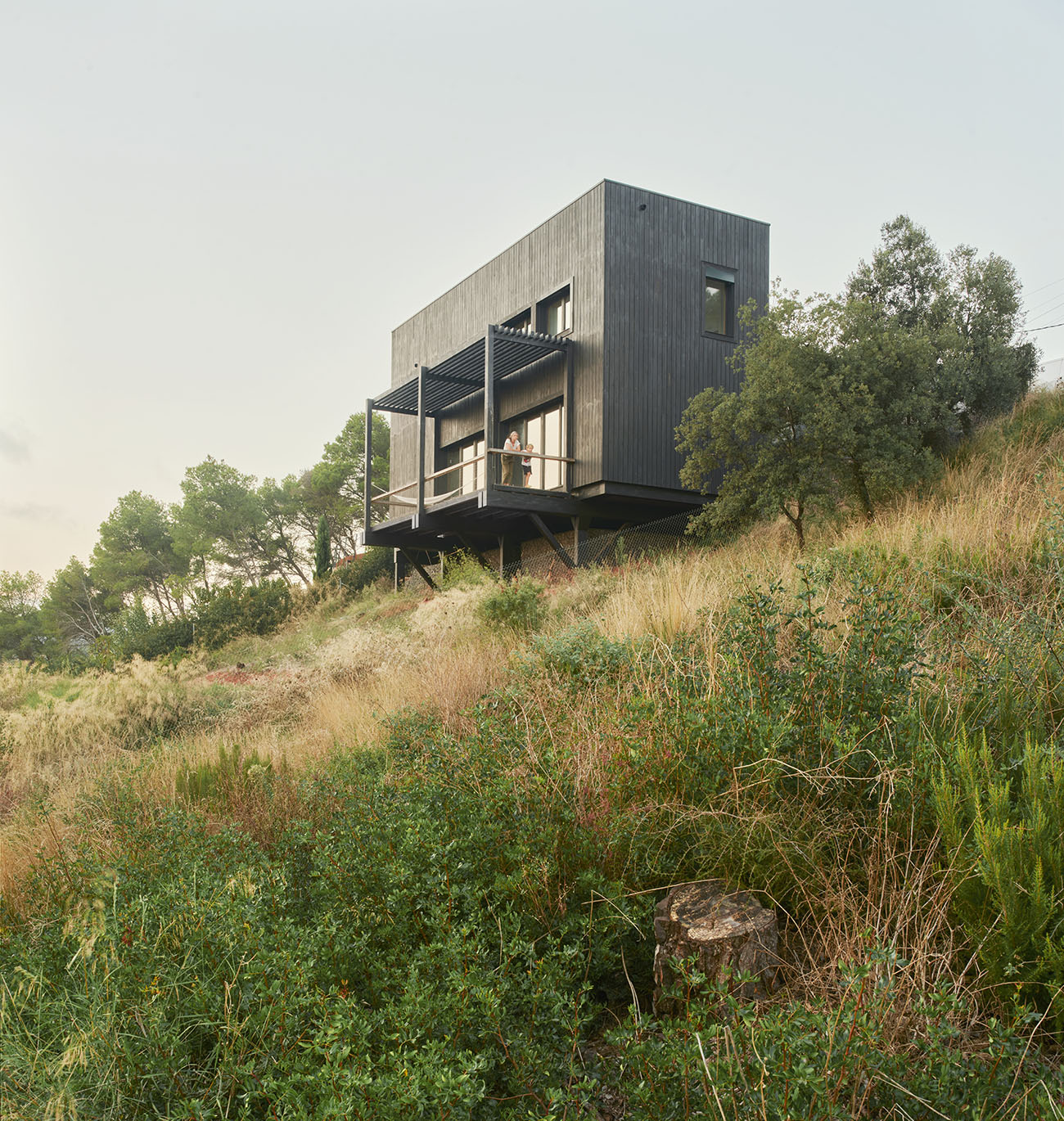 La base porticada libera el suelo y sobre ella, un entramado ligero configura el refugio: cálido y esencial. Los materiales naturales, el control de la energía y la simplicidad constructiva responden a una idea de sostenibilidad entendida no como gesto técnico, sino como forma de estar en el mundo.